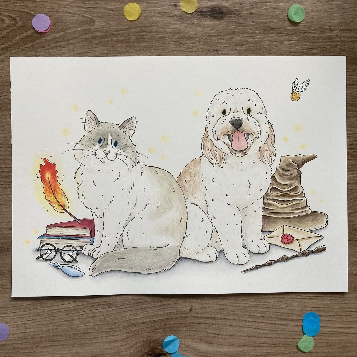 I’m an illustrator and animal artist specialising in creating fun and whimsical animal artwork, including pet commissions, art prints and more to brighten your day. I work across a range of mediums including watercolour and digital, creating illustrations inspired by my local wildlife and the animals around me. Go to my About Me page to find out more about me and my artwork!