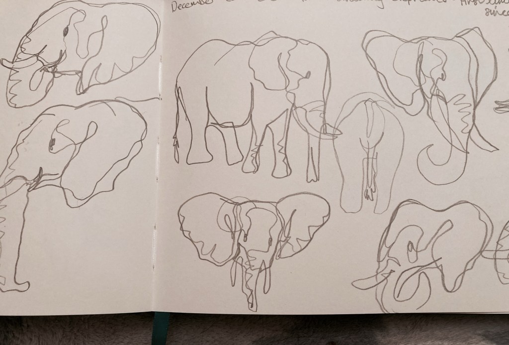 It was a very weird feeling to not be selling during this time and to not be posting about festive goodies and happy things whilst I was sat in a hospital bed wondering what was going to be happening to me I had no idea how long I would be staying in there and I was missing my family like crazy and I just couldn’t draw no matter what I did. I had a sketchbook and pencil with me in the hospital but every time I tried, I just couldn’t create. It felt like a part of me was missing. The stress of my illness and wondering what was happening was just too much and my creative brain was just not engaging. I was in complete survival mode and creativity was the last thing I wanted to do even when I came home the first time waiting for surgery, I was mostly feeling okay but I still couldn’t create. I remember the first time I put pencil to paper during that week. Everything felt forced and my coordination just wasn’t there. It was such a strange experience. I just couldn’t draw it took quite a few attempts for me to finally manage to draw something. Thankfully watching some Safari videos with loads of elephants was a great inspiration and I managed to draw some fun elephant line sketches.