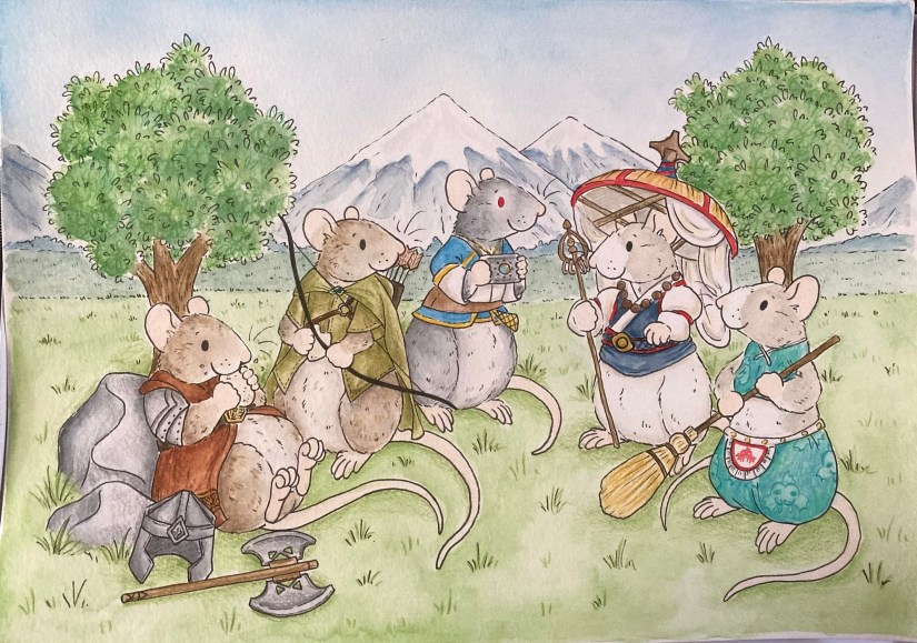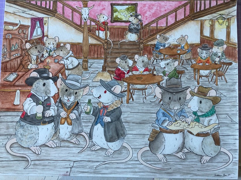 I love to draw nature and anything animal related, including pet portraits. I’ve created many pet portraits since starting my business including lots of pet rats, cats and dogs. I’ve even had the opportunity to create portraits of rats in a Western setting, a portrait of pet rats playing Dungeons & Dragons, a Queen rat and her royal mischief and a very grumpy hedgehog!