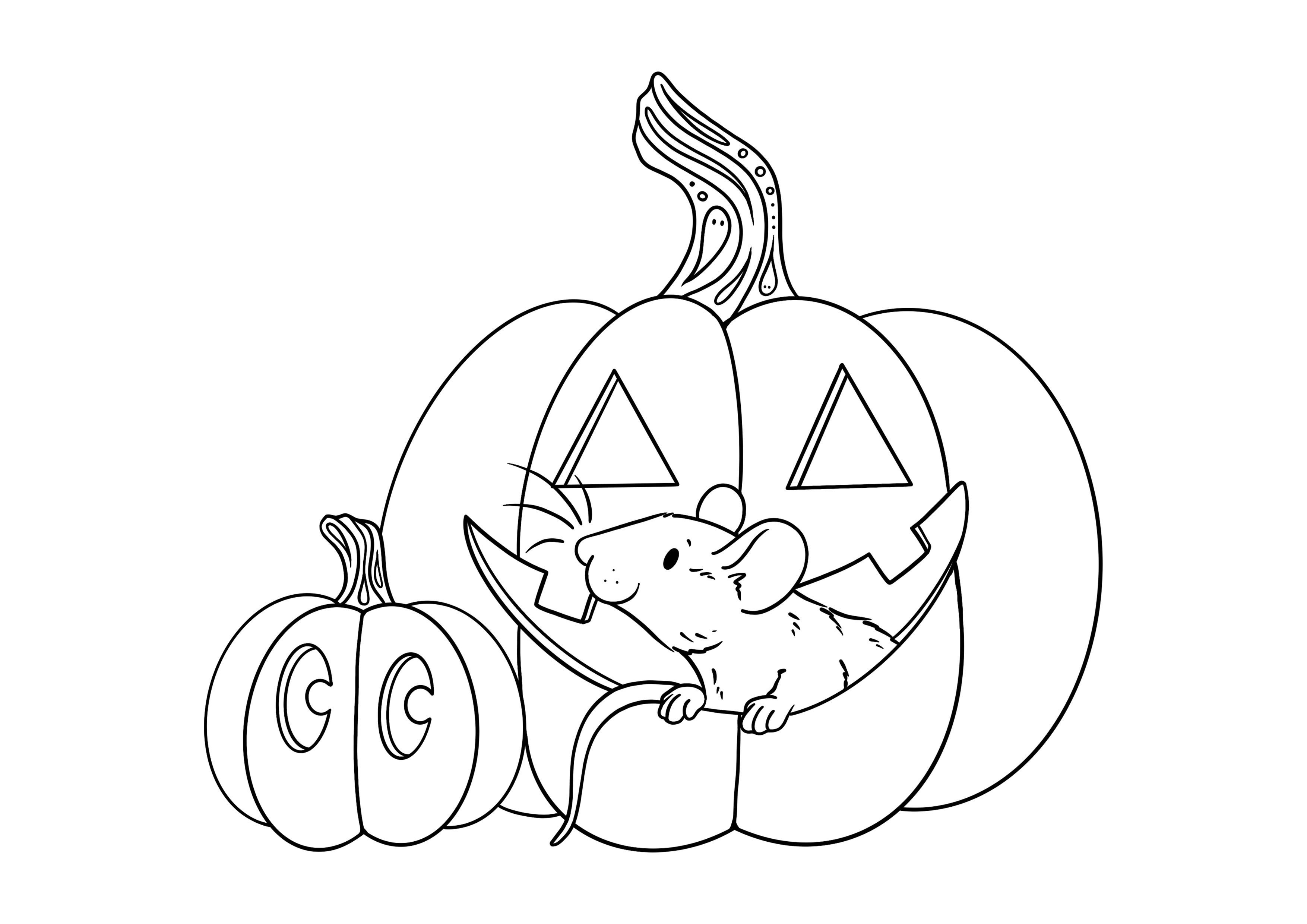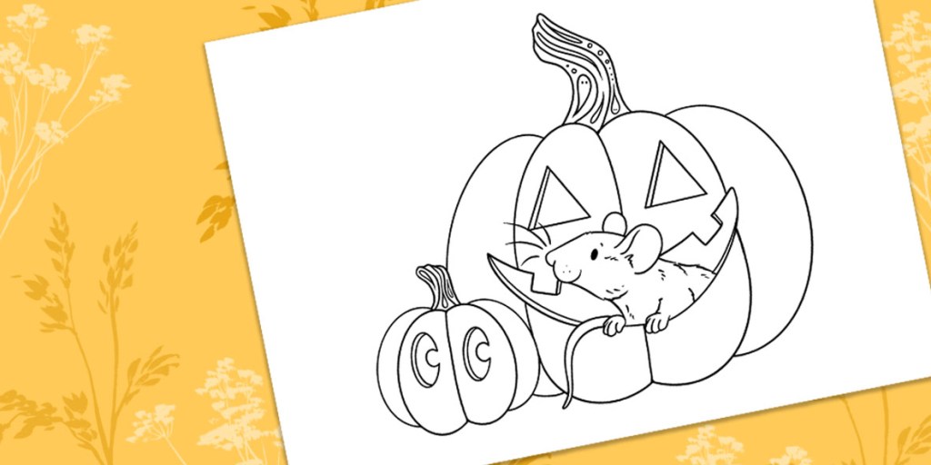 Here’s a free downloadable colouring page featuring a cute little ratty with some pumpkins to get you started!